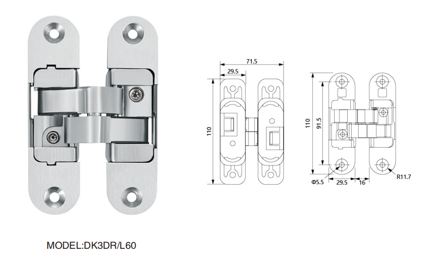If the door height exceeds 2100mm, each door must be equipped with 4 hinges